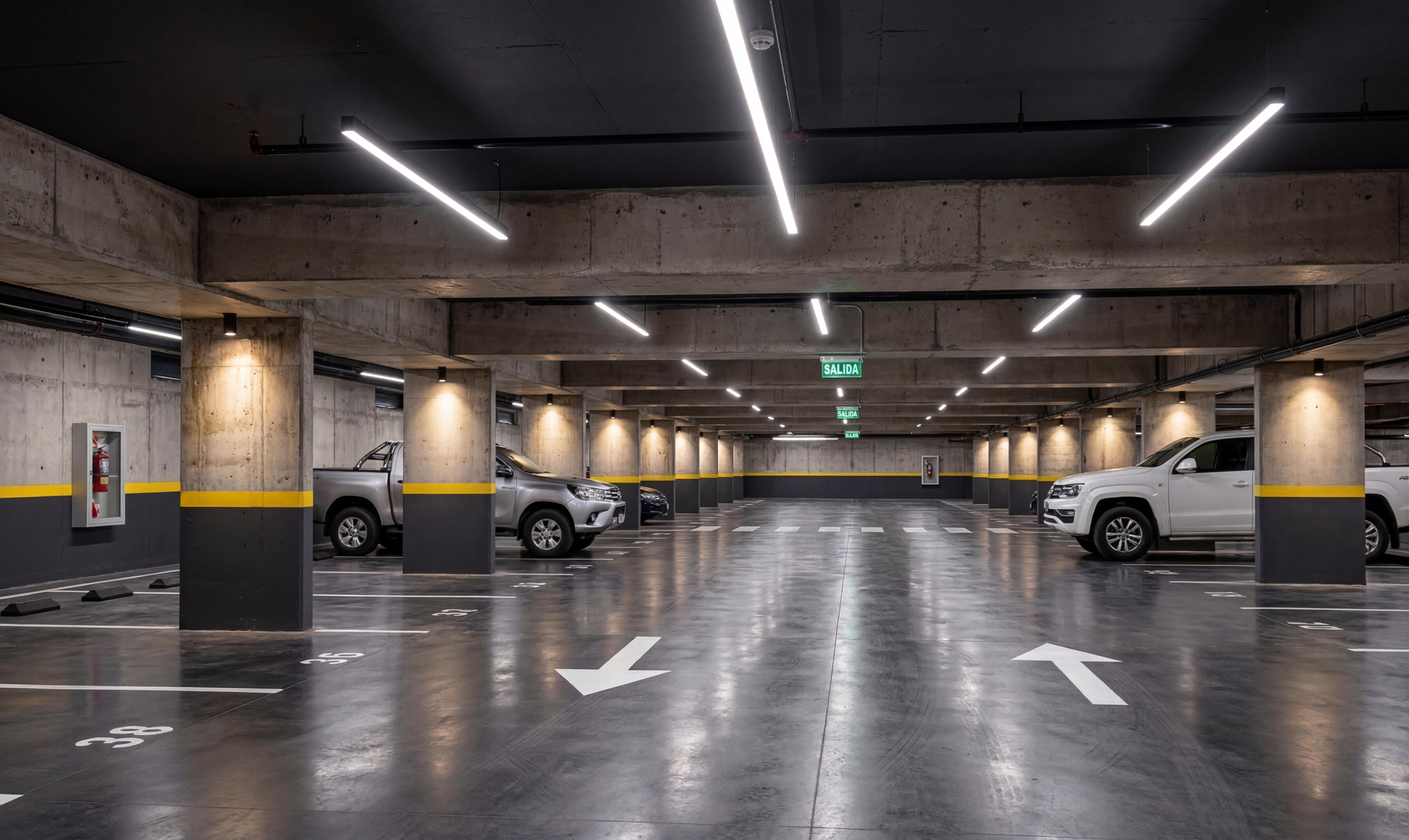 Cada departamento cuenta con cochera subterranea y además el complejo tiene cocheras descubiertas de cortesía para tus invitados.